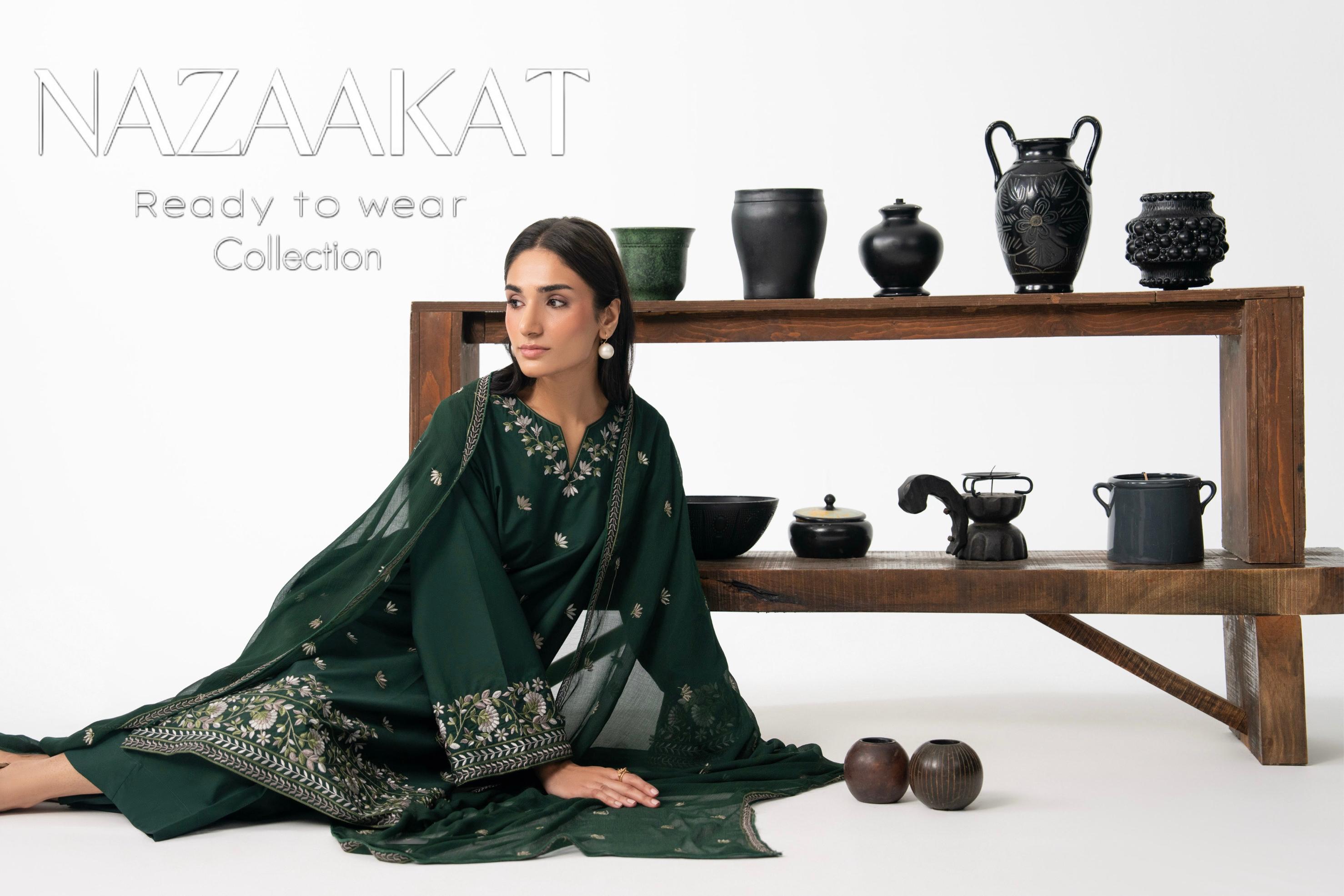 GREEN ZUMAR 3PC COTTON EMBROIDERED SUIT